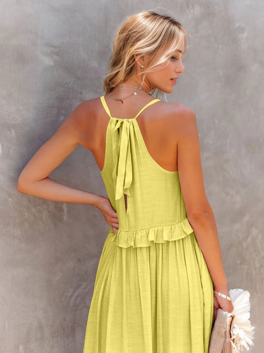 Ruffled Sleeveless Tiered Maxi with Pockets